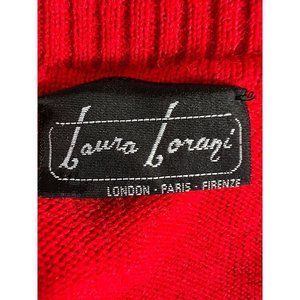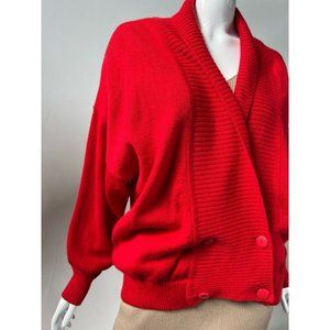 Vintage Laura Lorani Womens Cardigan Sweater Red Wool Surplice Long Sleeve EU 42