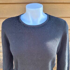 Vintage Laura Scott Petite Black Beaded Sweater L 3/4 Sleeve Acrylic & Cotton Bl