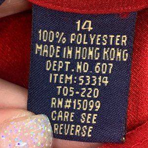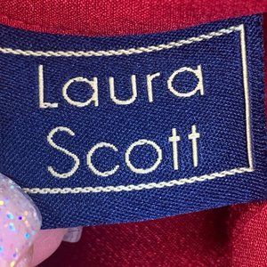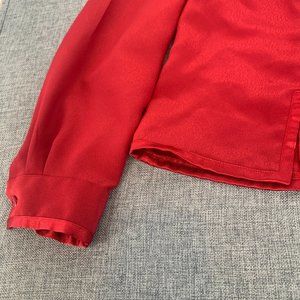Vintage Laura Scott Red button Down Blouse Long Sleeve Silky Shoulder Pads 14