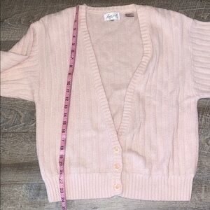 Vintage Laura Scott light Pink Cardigan 3 button Sweater with Ribbed Knit