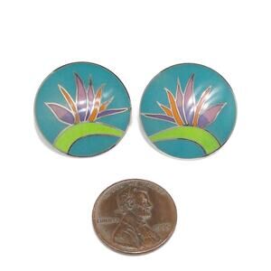 *Description: This is a beautiful pair of floral Bird of Paradise Laurel Burch earrings in silver tone cloisonné & pastel enamel in teal, green, purple, lavender and orange. The earrings are silver toned, gold plated and stamped LAUREL BURCH on the back of each earring. They are a little under an inch, measuring 15/16 inch in length and width. The posts are gold filled. This beautiful pair of Laurel Burch bird of paradise post earrings would be a great addition to your vintage jewelry collection or make a great vintage gift!