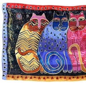 Beautiful and colorful boho chic artsy cats silk scarf from Laurel Burch