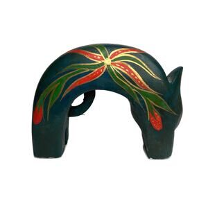 Vintage Laurel Burch Wooden Hand Painted Arched Cat Figurine Holiday Xmas