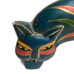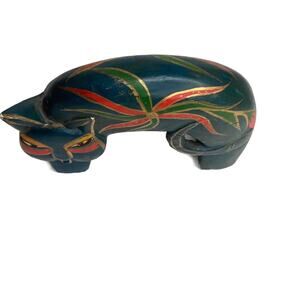 Vintage Laurel Burch Wood Arched Cat Figurine
