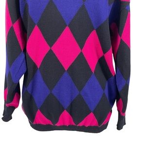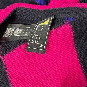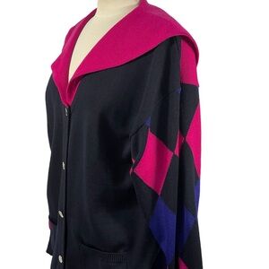 Vintage Laurel By Escada Wool Black Pink Blue Harlequin Diamond Cardigan Sz 42