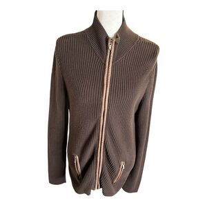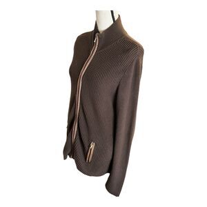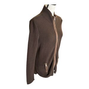 Vintage Lauren Active Ralph Lauren Womens Large Brown Knit Jacket Leather Trim