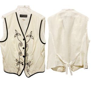 Vintage white with black embroidery vest, fully lined