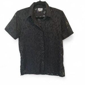 Vintage Lauren Lee Black sheer print button up shirt women's