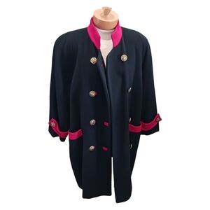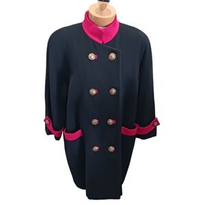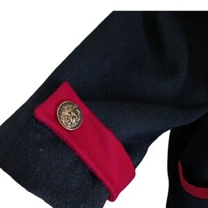 Vintage Lauren Meren Womens Pea Coat Black Red Lion Military Large/ 12 USA