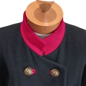 Stunning vintage women's pea coat with unique lion head buttons. The epitome of 80s maximalism. Perfect coat for winter or fall.