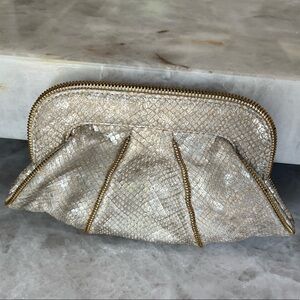 Vintage Lauren Merkin Gold/Silver Metallic Snakeskin Clutch