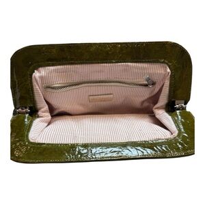 Vintage Lauren Merkin Olive Green Patent Leather Pleated Clutch Made in NYC EUC