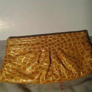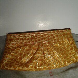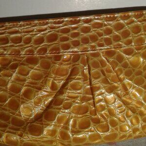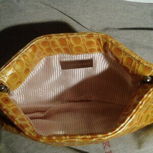 Vintage Lauren Merkin Yellow Patent Leather Embossed Croc Clutch
