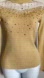 Vintage Lauren Michelle Gold Sequin Pearls Illusion Metallic Knit Sweater Size S