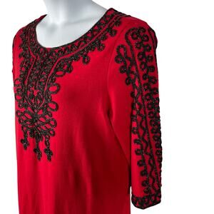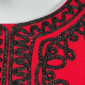 Vintage Lauren Michelle Top Womens Large Red Black Sparkle Soutache Trim
