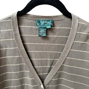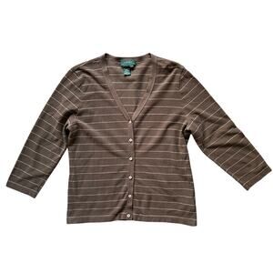 Vintage Lauren Ralph Lauren 100% Cotton Stripped Brown 3/4 Sleeve Cardigan Sz Lg