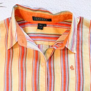 Lauren Ralph Lauren 100% Linen Yellow Striped Button-Down Top. Great summer shirt!