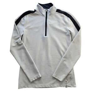 These LRL activewear quarter-zip pullovers are in excellent pre-owned condition with no discernable rips or stains! One is blue with black detailing and the other is cream/off-white with black detailing. The white one is missing the size tag, but the measurements of both items are the same. Please see photos for close-ups and tag information!
