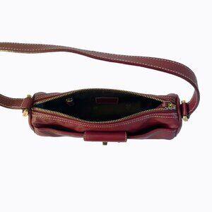 Vintage Lauren Ralph Lauren Baguette Bag Burgundy Red Leather Twist-Lock Y2K 90s
