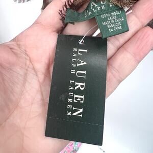 Vintage Lauren Ralph Lauren Brown Plaid Wool Scarf Rhinestone Crest