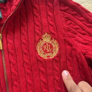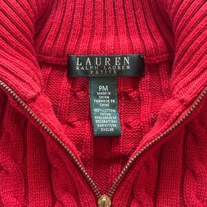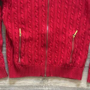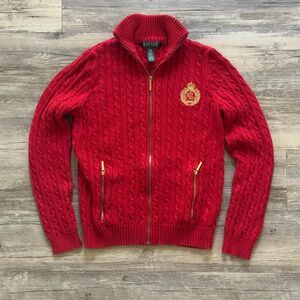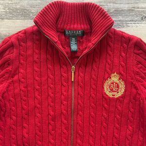 Vintage Lauren Ralph Lauren Cable Knit Full Zip Crest Sweater Size Medium Petite