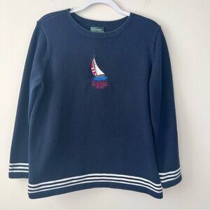 Vintage Lauren Ralph Lauren Embroidered Boat Coastal Nautical Navy Sweater