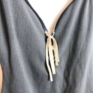 Faux suede lace up detail.