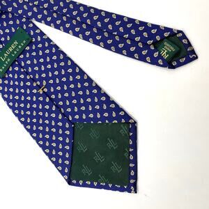 Vintage Lauren Ralph Lauren Men Silk Tie Necktie Navy Gold Paisley Made in USA