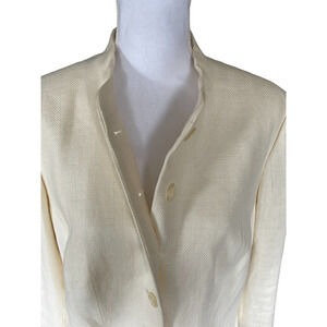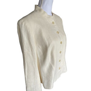 Vintage Lauren Ralph Lauren Nehru Jacket 1990's Sz 14W Ivory White Linen Fitted