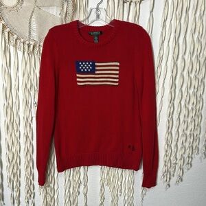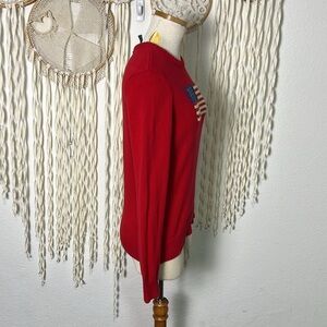Vintage Lauren Ralph Lauren Red Cotton Sweater with Flag Detail L/Runs Small