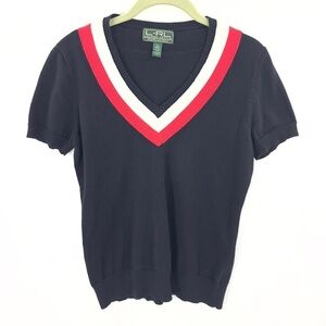 Vintage Lauren Ralph Lauren Womens Sweater Size M Preppy Vneck Stripe Pullover