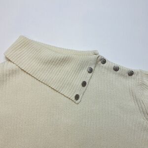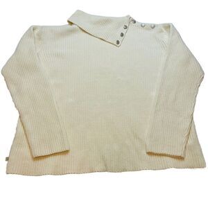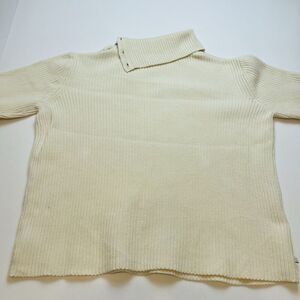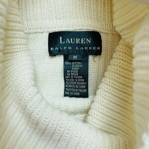 Vintage Lauren Ralph Lauren Sweater Womens M Ivory Rib Knit Split Turtleneck