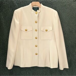 Vintage Lauren Ralph Lauren Wool Blazer Suit Jacket Cream Gold Size 12P USA
