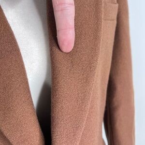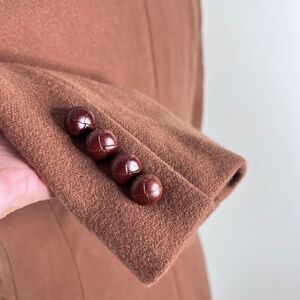 Size 4. In great condition. Small area of wear on collar where maybe a brooch was used.. not significant but want you to know its there.. see all photos. Kind of a chestnut brown color. Cashmere and Wool blend. Well made. Made in Thailand.