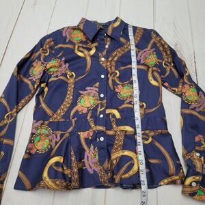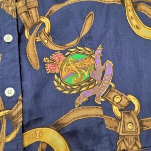 Vintage Lauren Ralph Lauren equestrian pleated button down top bridle bit gold