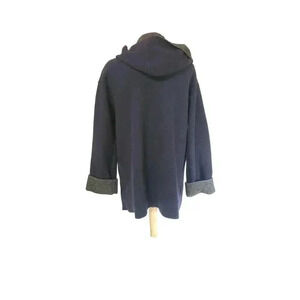 Vintage Lauren Ralph Lauren hooded cardigan wool blend women's size large navy blue and grey brass hardware super cool!