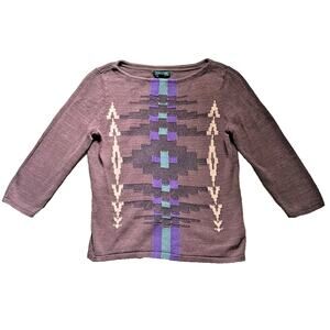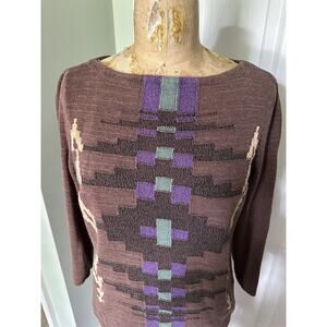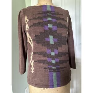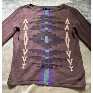Vintage Lauren Ralph Lauren tunic Top Sz L Brown Pullover Aztec Sweater Women