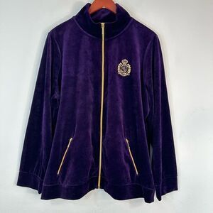 Item: Vintage Lauren Ralph Lauren Purple Velour Zip Jacket w Crest Logo Women’s 3X
