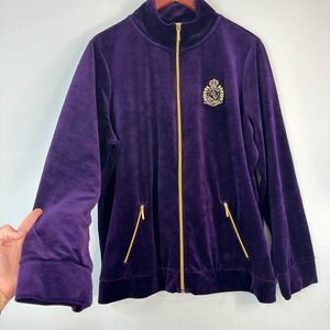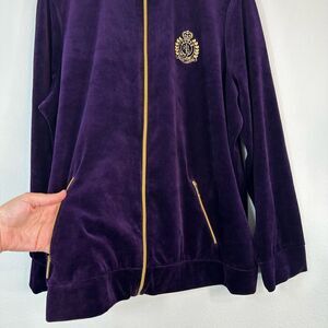 Vintage Lauren Ralph Lauren Purple Velour Zip Jacket w Crest Logo Women’s 3X