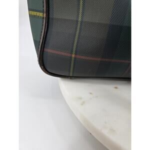 Beautiful vintage Lauren by Ralph Lauren tote in coated canvas with a classic plaid pattern. Features leather straps, brass hardware, zip closure, and a built-in keyring holder. Sturdy and stylish—perfect for everyday use, work, or travel. Timeless design with a luxe vintage feel.