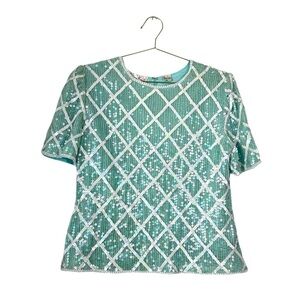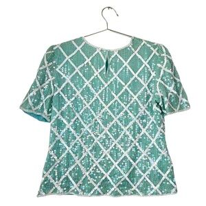 Vintage Laurence Kazar • Mermaid Green Sequin Blouse Size PM