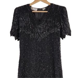 Laurence Kazar Vintage Hand beaded Dress Size Medium Black