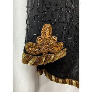 Vintage Laurence Kazar Heavy Sequined Silk Gold Black Evening Jacket XL Military