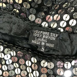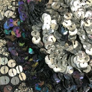 Garment may have loose and/or missing sequins, beads, stitching, light wear.