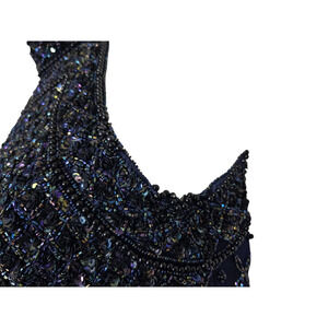 Vintage Laurence Kazar Silk Beaded Gown Size Large Long Bling Formal Dress Prom