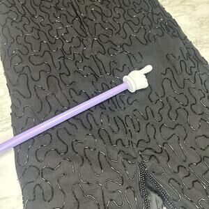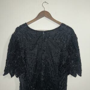 Vintage Laurence Kazar Silk Dress 2XL Black Beaded Sequin Elegant Formal Holiday
