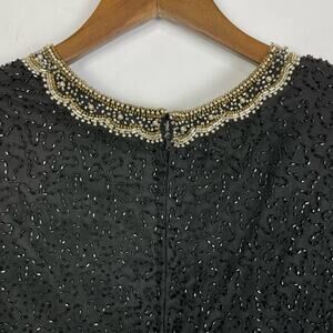 Vintage Laurence Kazer | M/L 80s Beaded & Sequins Silk Elegant Formal Blouse