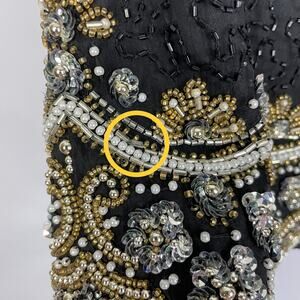 Detailed silver & gold beads trimming around collar, hem & sleeves