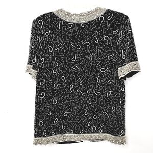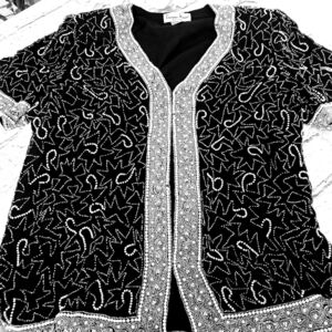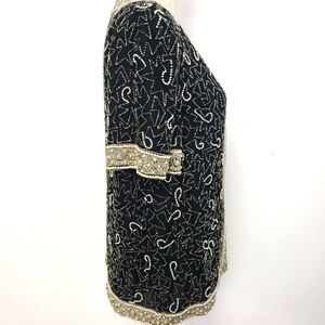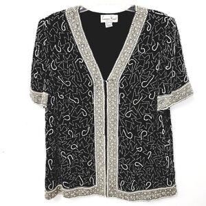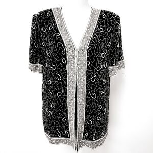 Vintage Laurence Kazer New York 100% Silk Beaded Short Sleeve Jacket XL EUC