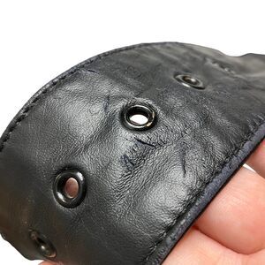 No holes or stains. Has a few small surface wear marks on the front that are hard to notice unless really looking, may be removable with a good leather clean/condition. The belt has some obvious wear around the notch that was used by previous owner. See photos for condition and measurements.